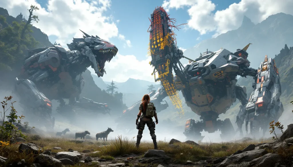 In a world where robotic dinosaurs roam the land and breathtaking landscapes stretch as far as the eye can see,